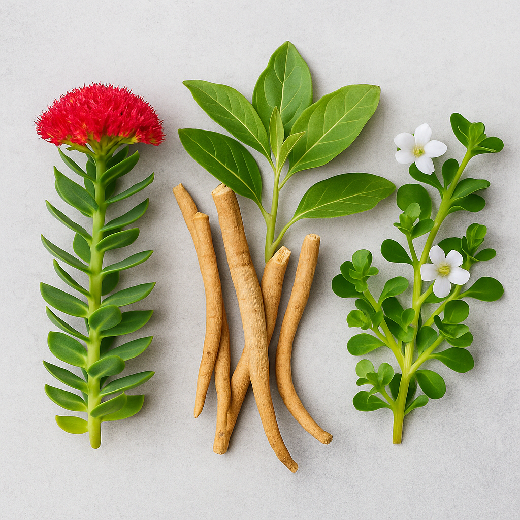 🌿 Rhodiola, Ashwagandha și Bacopa – forța naturii pentru minte